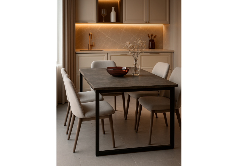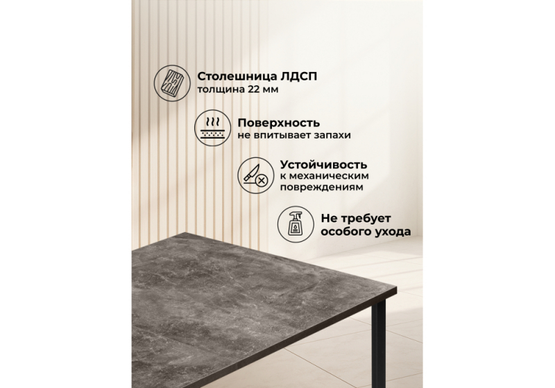 Стол деревянный Лиман 117 (157) x 77 бетон темный / черный матовый (77x75)